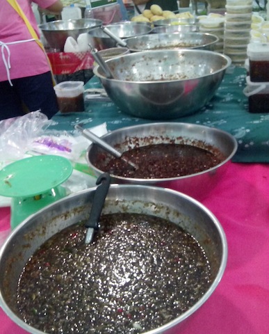 Pero rugya sa Mango Festival pagusto lang ako ka pili. Para sa luto nga mangga, ginaimawan man dya kang pilit nga kan-un (kao niyao mamuang). Pagkatapos raha kang pilit sa steamer, huruman sa gata kang niyog nga ginpabukalan nga may kalamay kag asin. Kun magkaun run gani, puede man dugangan butang kang gata kang niyog kag kun ano-ano pa nga toppings parehas abi kang monggo nga ginsanlag. Manamit ugaring tama ka taas ang calorie na kadya. Kun sa atun gani ang luto nga mangga ginakaun man natun imaw kang ibos. Te daw parehas man nga kinaugali pero lain lang ang pagraha kang pilit. Rugya ginabutangan man kang kolor ang pilit, parehas kang pandan (berde), strawberry (pink), butterfly pea ukon anchan sa thai (asul). Nabasahan ko nga ang ngaran sa tagalog kang butterfly pea amo ang ‘pukinggan’ pero hindi ko madumduman kun ano ang ngaran na sa Kinaray-a.