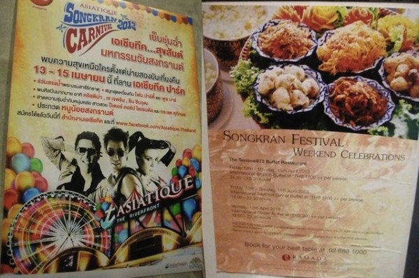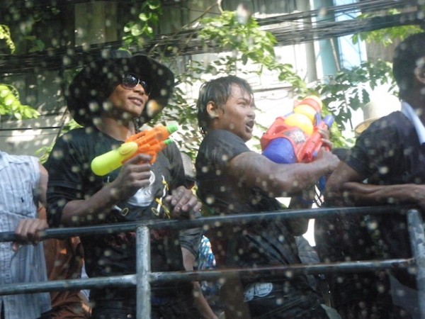 Kang nagligad nga semana, wara kami nagbyahe kang marayu tungod tamad kami mag-entra sa trapik. Gani nga nagplano kami nga rugya lang sa Bangkok magselebrar. Nagtener kami sa sangka hotel nga rapit sa Chao Phraya River. Daw nagbakasyon man kami hay nag-empake man kami ka gamit namun kag lain man ang palibot. Sa amun pag-libot-libot sa syudad nasadyahan man kami magturuk kang mga tawo nga nagabasyahanay tubig. Mayad lang sa sulud tamun kang sarakyan kundi wara tamun nabasa. Sa mga gusto mabasa kag magsipal, hungud man nanda maglibot sakay sa motorsiklo, ukon sa pick-up, ukon magpanaw-panaw, dara ang water guns ukon balde. Ang nagalibot sa pick-up, may drum kang tubig, balde kag kabo sanda nga dara, kag amo dya gin-usar nanda sa pagbasya sa mga tawo nga naga-hulat man kananda sa mga sidewalk nga may anda man nga pangbasya. Kun ang mga pick-up magsugata, basyahanay man sanda.