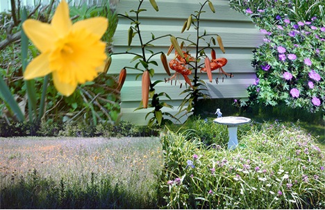 Daffodil, Asiatic Lily, Hardy Hibiscus, Pink/Purple Wall, Shrubs, Daisy, Iris