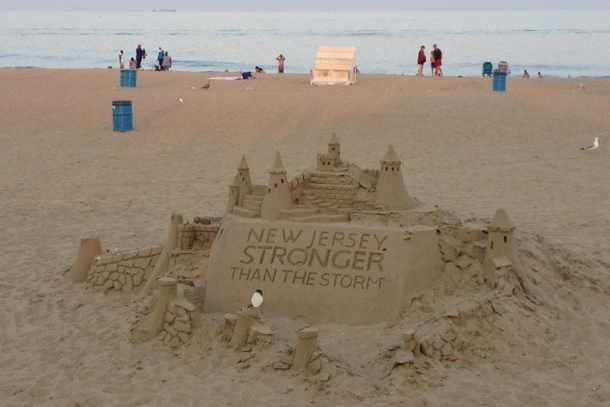 Pero sa kadya nga summer season, benny man ukon shoobe, nangin halangdun sanda kadya nga mga bisita rugya sa Jersey Shore. Kang nagligad nga Oktubre, nagwaswas ang Superstorm Sandy rugya dampi kag duro nga mga kabalayan kag negosyo marapit sa baybay ang nasamad. Parehas nga nakapaturo-luha ang mga laragway kang kalautan nga gintuga ni Sandy kag ang mga istorya kang pagbinuligay kag pagdagyaw agud makabangon liwan ang Jersey Shore. Ginhingagaw nga kid-anun ang mga naringkab nga mga boardwalk, gintinluan ang baybayun kag harus tanan nga mga negosyo nagbukas liwan kadya nga summer. Nagpanawagan ang gobernador kang New Jersey, ginbandilyo nga bukas liwan ang Jersey Shore. Sa telebisyon kag radyo, masaku ang pagwaswas kang New Jersey jingle nga “Stronger than the Storm”.