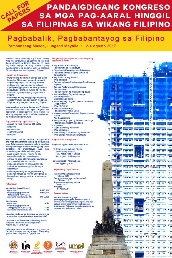 Isumite ang mga panukala sa: kongreso2017@gmail.com