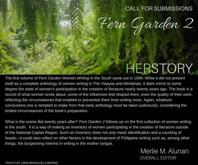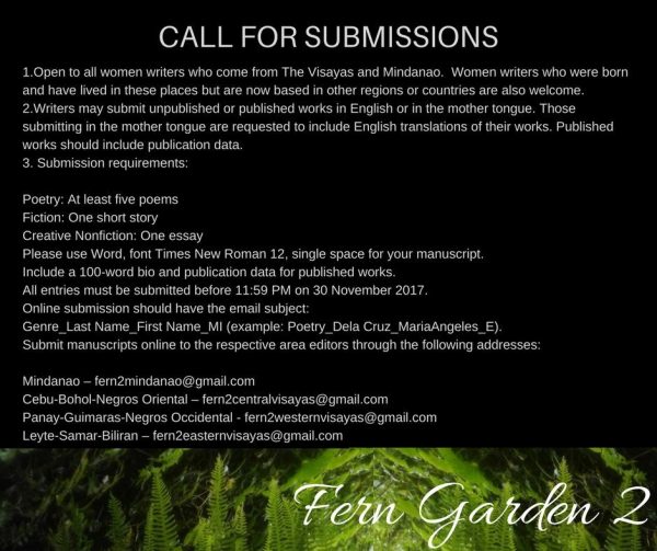 Call for Submissions: FERN GARDEN 2 (Women Writing in the South) August 3, 2017June 14, 2021Categories Archive: Contributors, Dayon Kamo: ArchiveLeave a Comment on Call for Submissions: FERN GARDEN 2 (Women Writing in the South) Dispatch from Facebook:https://m.facebook.com/story.php?story_fbid=10155058849186026&id=770046025 Share this: Click to share on Facebook (Opens in new window) Facebook Click to share on Tumblr (Opens in new window) Tumblr Click to share on Pinterest (Opens in new window) Pinterest More Click to email a link to a friend (Opens in new window) Email Click to print (Opens in new window) Print Click to share on LinkedIn (Opens in new window) LinkedIn Click to share on Reddit (Opens in new window) Reddit Like Loading... Related Published by Pangga Gen View all posts by Pangga Gen