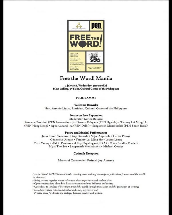 Poet Genevieve Asenjo reads in ‘Free the Word!’, a “roaming event series of contemporary literature from around the world” by PEN International.