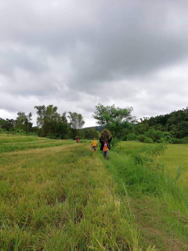 Pagkarating sa taniman ay dumakot ng palay, at pinahanginan. Inaasahan niyang mas madami ang matitipon ngayon. Medyo sumasakit na ang tirik ng araw at namumuo na ang pawis sa kanyang noo. Kailangang mas madami ang kita para mapantayan ang nagmamahalang bilihin. Unti-unti niyang nararamdaman ang pagtuyot ng lalamunan, ang pagkahapo dulot ng alikabok at init. Maya-maya pa’y maririnig ang wangwang sa kalsada. Nagtaka siya kung bakit parang may nagpapatrolya. Naalala niyang may hinahanap nga palang suspek sa katabing lugar nila. Palibhasa’y wala naman siyang pakialam sa mga nangyayari sa bayan, dagdag pa’y tagabukid siya, o hindi rin siya nakikiosyo sa mga tao sa baranggay.