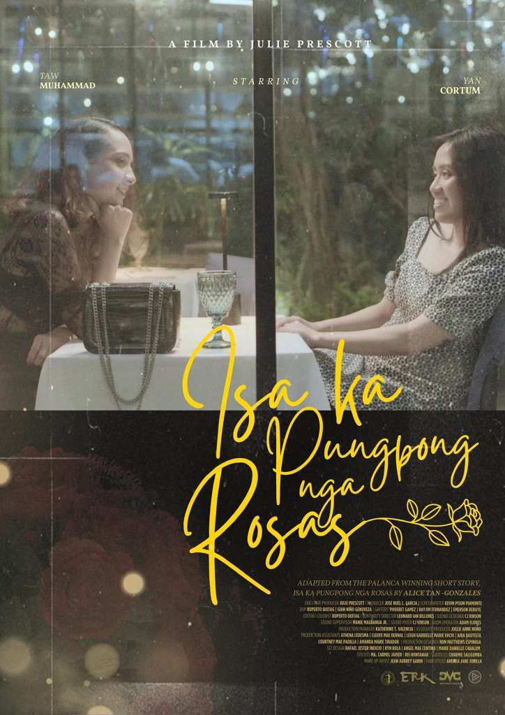This story-to-screen event is special to me. “Isa ka Pungpong nga Rosas” is an all-time favorite, not only as a Hiligaynon short story but as a Philippine literary text that I translated to Filipino in 2013, “Isang Pumpon ng Rosas.” Tan Gonzales is one of my former and favorite UPV professors and a major influence. That this film is almost perfect in its attention to detail and deployment of visual language to its choice of actors — Alyanna Cortum as Gemma, the cisfemale protagonist, and Taw Muhammad as the queer Claire —made me happy and proud. Muhammad, most especially, is memorable: physically gorgeous with vocal qualities that rendered her natural and convincing performance of Claire as a decent, sensitive, and enlightened person. This is true of the short story’s characterization and representation, and it is an important element as it busts stereotypes.