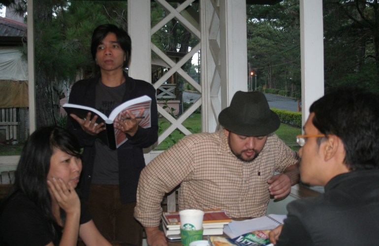Sina Nerissa, John, Khavn, at Allan sa Starbucks. Post-session engagement.